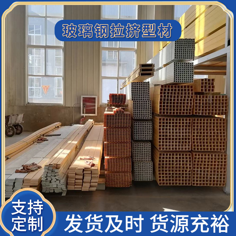 玻璃钢拉挤型材是一种由玻璃纤维和树脂经过特定的拉挤工艺加工而成的复合材料。工艺:将连续玻璃纤维粗纱、玻璃纤维连续毡等在拉挤成型机的牵引下,浸胶后经模具定型加热成型,可生产出各种截面形状和尺寸的型材、棒材和管材。